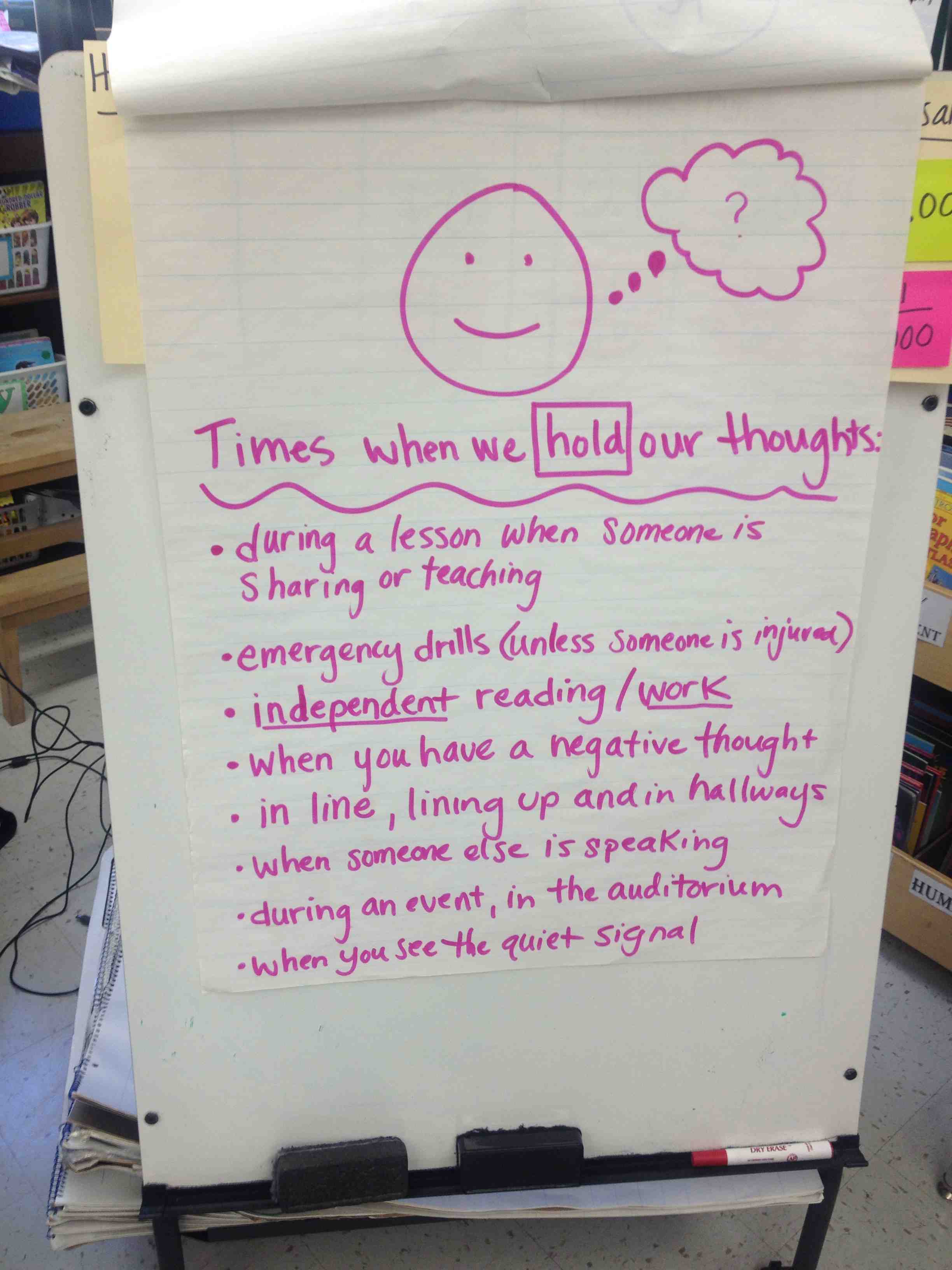 There are also certain times and places that determine how much to share or hold your thoughts. Here’s a really nice example of this balance from a school setting. Rachel Rochlin, a 5th grade teacher in East Harlem, New York City, made these terrific posters to help her students think through when it’s a good time to share or hold thoughts in school: